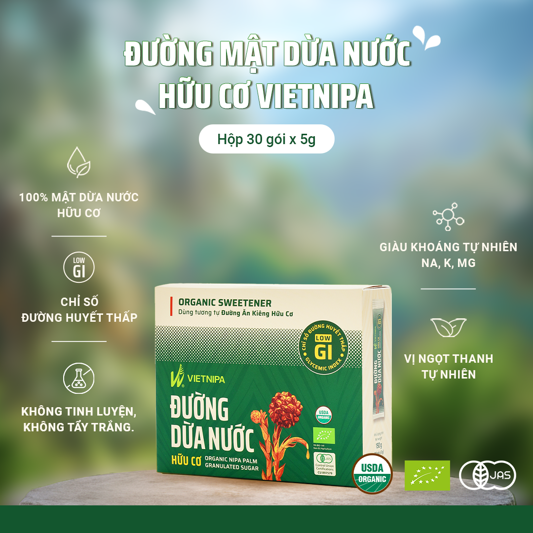 Phù hợp với người bị tiểu đường, người ăn kiêng: Đường Dừa Nước được chế biến hoàn toàn từ Mật Dừa Nước Cô đặc, đã được Viện Hàn lâm Khoa học và Công nghệ chứng nhận có chỉ số đường huyết thấp (GI = 17). Vì thế rất phù hợp với người ăn kiêng và tiểu đường type 2.